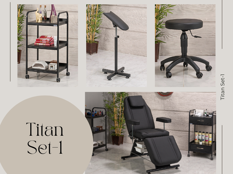 Bir dövme koltuğu seti tipik olarak; koltuk + setup masası + kol dayama sehpası + dövmeci sandalyesinden oluşur. Bazen aydınlatma ayağı veya küçük sarf organizerleri de dâhil edilir. Set almanın üç belirgin faydası vardır: