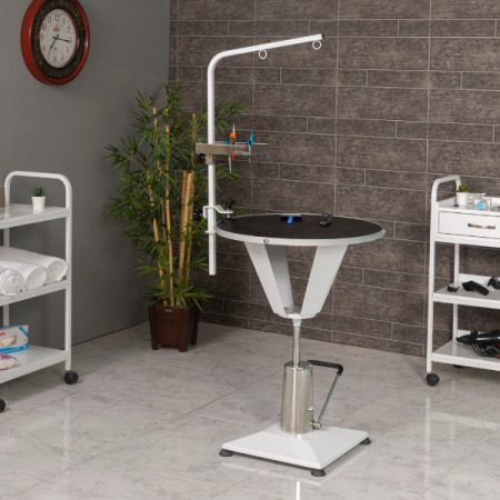 Elektrikli kumanda sistemi ile yüksekliği hızlı şekilde ayarlanabilen bu model, yoğun operasyon temposunda kullanıcı konforunu artırır. İşletmelerde zaman tasarrufu sağlayan pet kuaför malzemeleri çözümlerinden biridir.